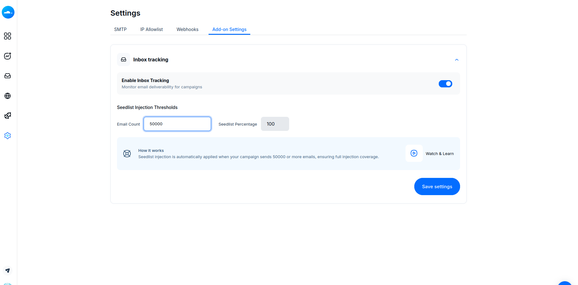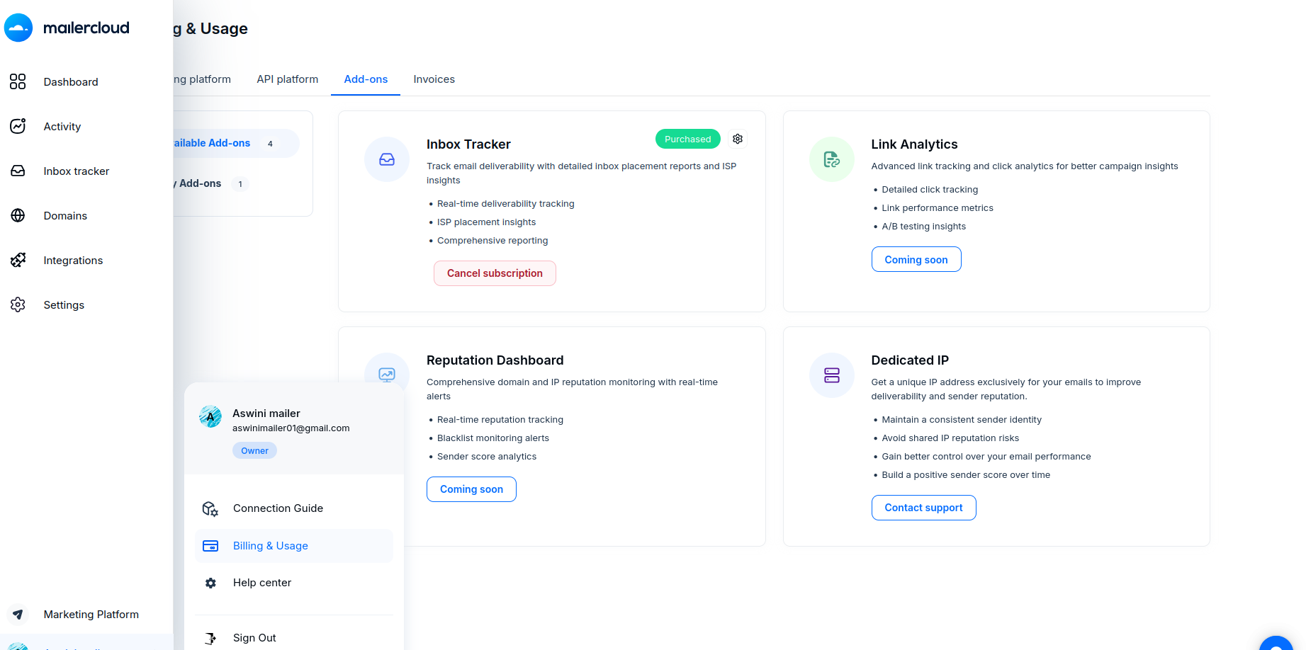 Inbox Tracker is available as a paid add-on in Mailercloud.