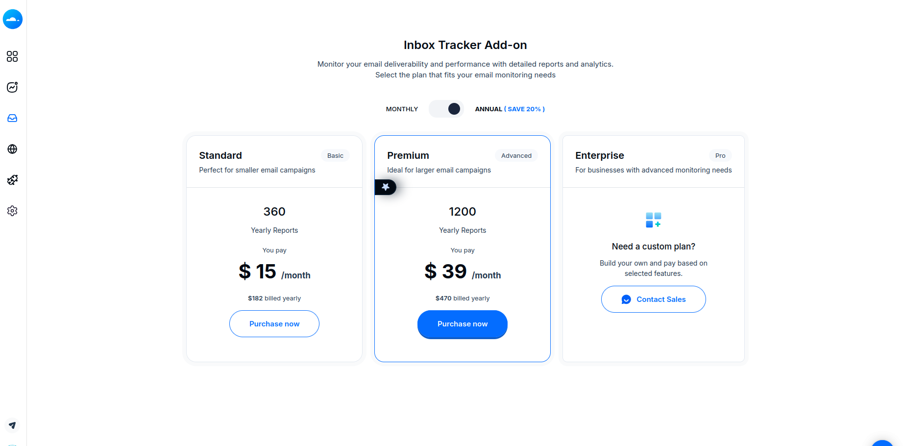 Under Available Add-ons, locate Inbox Tracker and purchase a suitable plan.