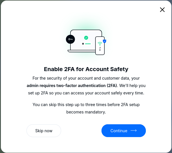 After 3 skips, setup becomes mandatory and they cannot log in without completing 2FA.